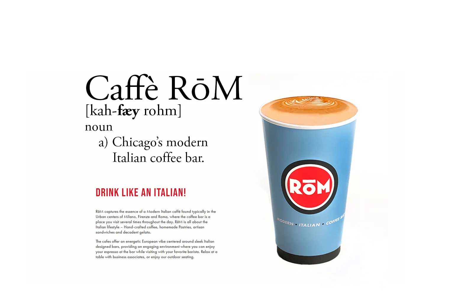 Let Caffè RōM bring the taste of Italy to your office with artisan pastries, gourmet coffee, traditional Italian panini, seasonal salads and handcrafted desserts. We add just the right accent to any event. Whether breakfast, lunch or afternoon snacks – RōM delivers satisfaction. With two locations to serve you, call today to arrange for your next event.